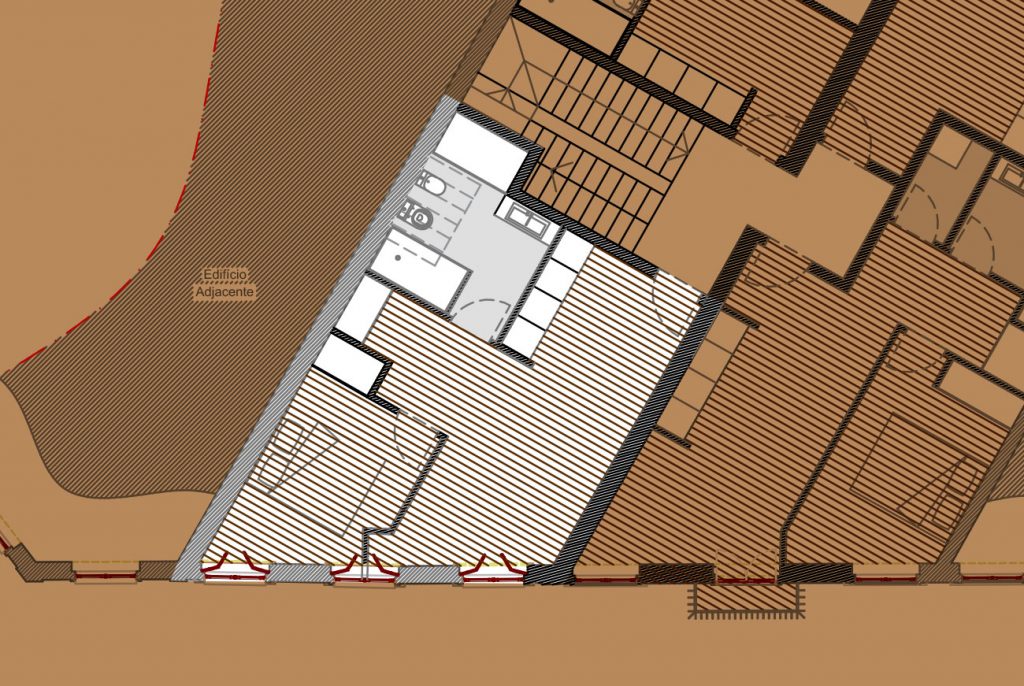 Apartamento de tipologia T1, dotado de sala/cozinha, uma instalação sanitária e um quarto.